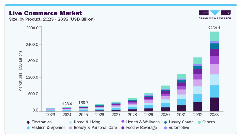The global live commerce market was valued at $128.42 billion in 2024. By 2033, analysts project it will explode to $2.47 trillion, a staggering 39.9% annual growth rate.