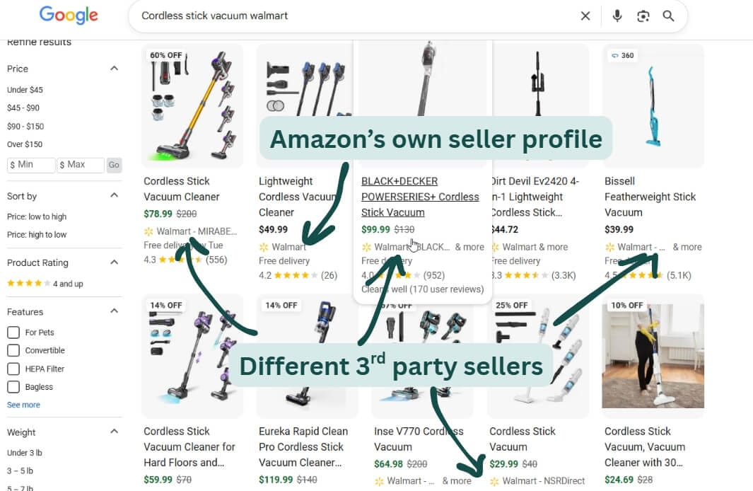 Walmart Is Quietly Dominating Google Shopping With 1,600+ Seller Names