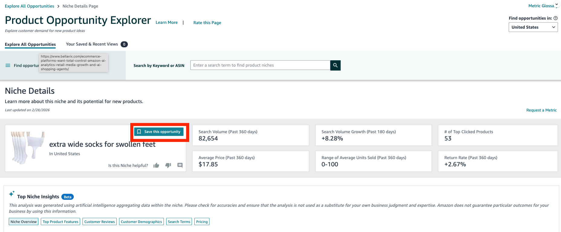 Amazon just added "Saved Opportunities" to Product Opportunity Explorer. You can now save niches and ASINs with one click, track them over time, and access them across global marketplaces. Everything lives in a new "Your Saved & Recent Views" tab inside Seller Central. Will Haire posted about this on Linkedin.