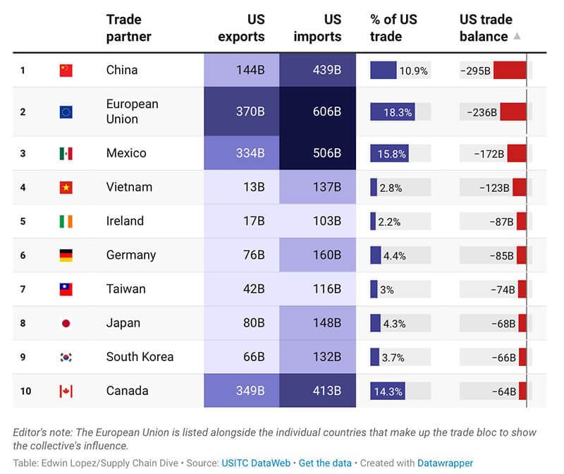 🌎 TOP TRADING PARTNERS of THE UNITED STATES