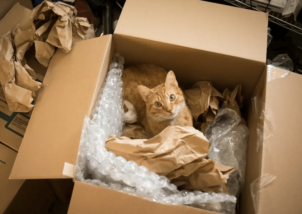 An Amazon warehouse worker found the cat sealed in a box alongside five pairs of steel-toed work boots. Amazon took the cat to a veterinarian who scanned her microchip to find the owner.