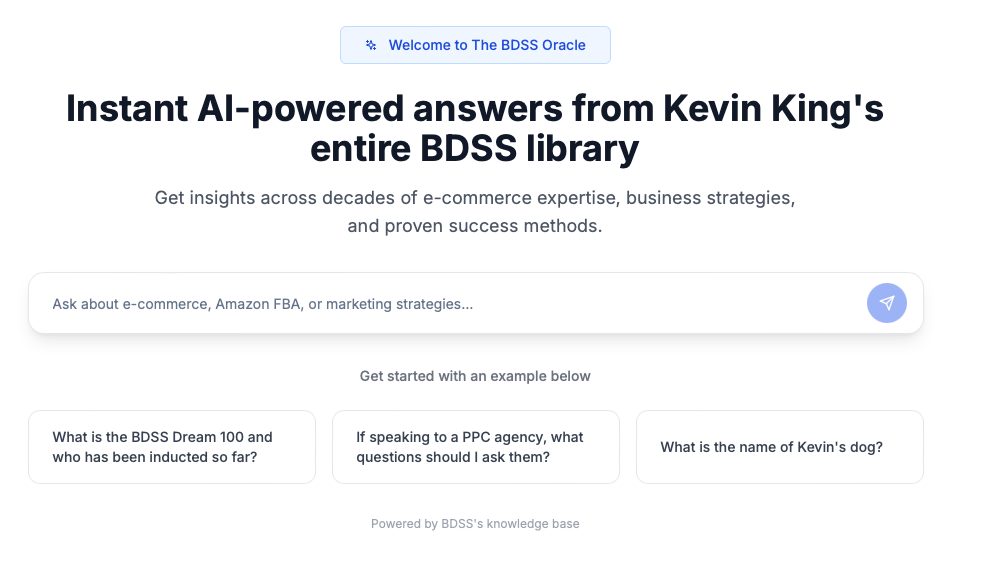 The BDSS Oracle uses content exclusively from Kevin’s curated Amazon and ecom experts, not random internet sources.