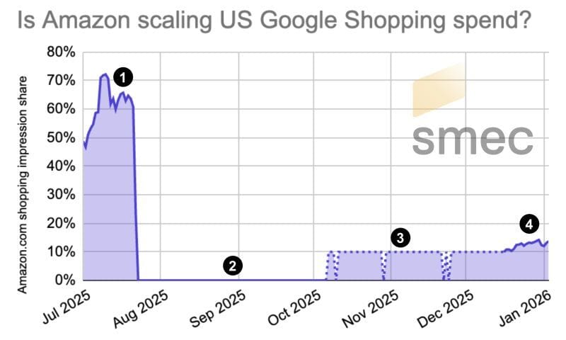 Amazon famously pulled the plug on its massive Google Shopping ad spend in July 2025, disappearing from one of its biggest advertising channels worldwide.