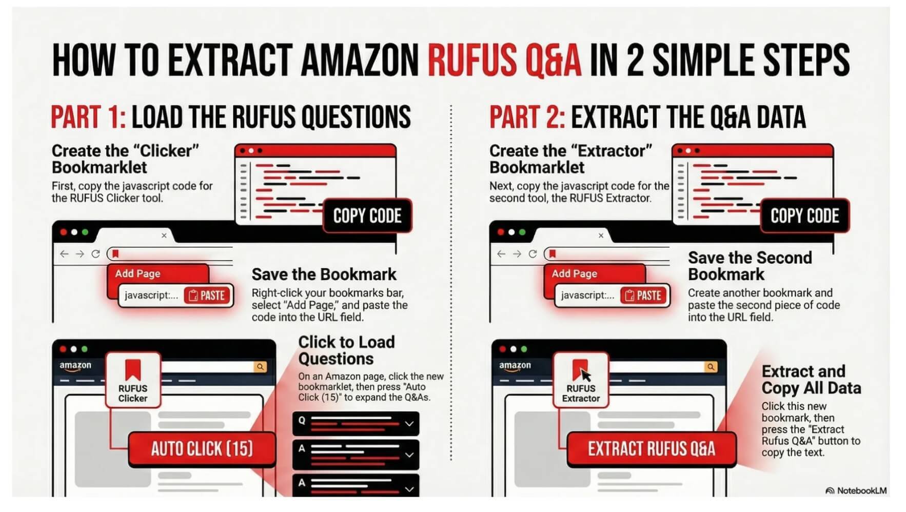 Together, they help users quickly gather RUFUS insights for product research or listing optimization.