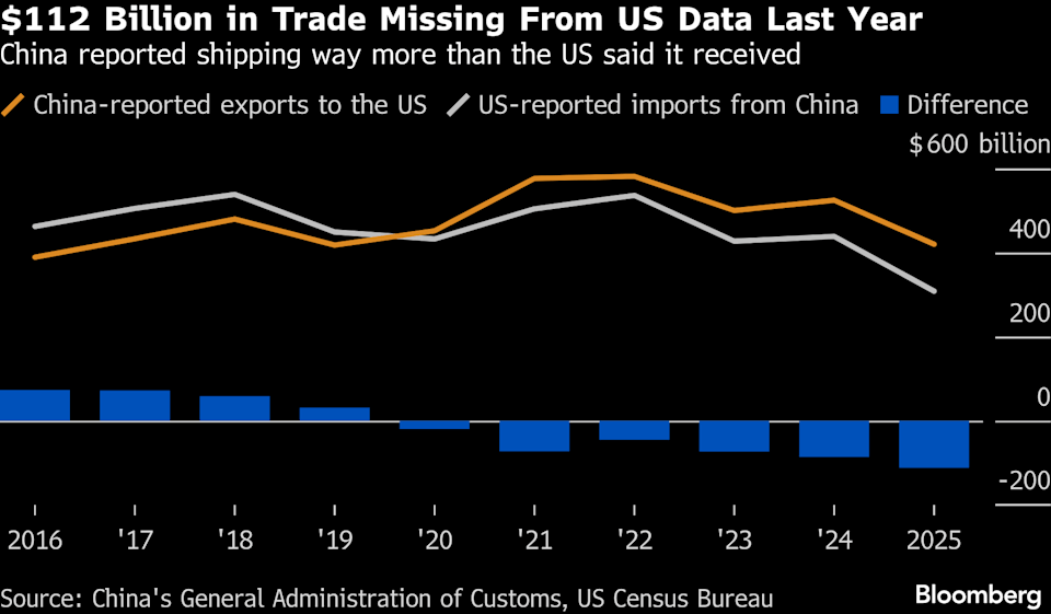 Trade data shows a $112 billion gap between what China says it exported to the US and what US Customs recorded arriving last year. That means roughly a quarter of goods shipped from China may have slipped through without proper duties being paid.