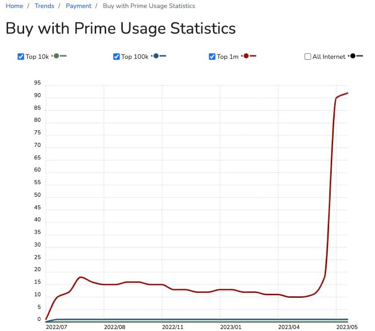 Six month ago, there were 215 websites using Amazon’s Buy with Prime.