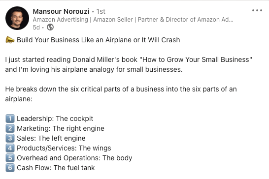 As Mansour points out in today’s newsletter, an airplane is like a small business.