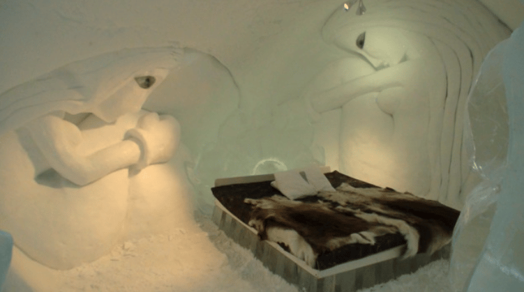 You really do sleep on a bed made of ice. On top of the ice is a thin mattress, and on top of that are reindeer skin hides. The hotel gives you a thermal sleeping bag. They have double wide ones for couples to share if they wish.